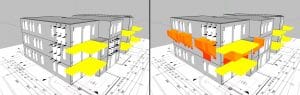 Hoe verklein je het risico op brandoverslag? Op grond van de Woningwet ben je als eigenaar van een gebouw verplicht de nodige zorg te dragen om gevaar voor gezondheid of veiligheid te voorkomen. Gebouwen moeten dan ook worden gerealiseerd conform de regelgeving van het Bouwbesluit. Ook brandveiligheid valt onder die zorgplicht. Dat betekent dat je als gebouweigenaar (maar ook als bouwer) ervoor moet zorgen dat uitbreiding van brand zoveel mogelijk wordt voorkomen. Brandoverslag Een van de oorzaken dat een brand zich kan uitbreiden buiten de ruimte waar deze ontstaat, is brandoverslag. Een brand breidt zich in dit geval uit via de buitenlucht, van het ene brandcompartiment naar een ander brandcompartiment. In een appartementengebouw kan brand via de gevelopeningen overslaan naar de bovenliggende verdieping(en) (zie afbeeldingen). Maar ook bij vrijstaande brandcompartimenten (bebouwing) kan brandoverslag plaatsvinden naar een gebouw op het perceel ernaast. Het risico op brandoverslag via de buitenlucht bij rijtjeswoningen is klein. Brand breidt zich niet 180 graden horizontaal uit, maar diagonaal of verticaal. Gevelopeningen Het risico op brandoverslag wordt vooral bepaald door de totale oppervlakte van het brandcompartiment. Daarbij zijn het aantal en de grootte van de gevelopeningen en hun onderlinge afstand doorslaggevend. Bij grote brandcompartimenten met één gevelopening is de vlamintensiteit hoger, waardoor brandoverslag sneller plaatsvindt. Een mogelijke oplossing is het compartiment te voorzien van extra gevelopeningen, waardoor de vlamintensiteit verdeeld wordt. Ook de hoogte van de borstwering van het bovenliggende brandcompartiment is van invloed. Hoe lager deze is, hoe groter het risico op overslag. Om brandoverslag via de gevelopeningen te voorkomen kan één- of tweezijdig brandwerend glas worden toegepast. Modelleren Het risico op brandoverslag bepalen we door te modelleren. De buitenste oppervlaktematen van het brandcompartiment plaatsen we in een computermodel, waarbij we de gevelopeningen (ramen inclusief kozijnen) ‘open’ modelleren. Op cruciale punten plaatsen we zogeheten observatieposities die de stralingswarmte van uitslaande vlammen meten. De vlammen van de virtuele brand die we vervolgens laten ontstaan, zullen via de gevelsparingen uitslaan. Zodra de observatieposities een uitslag geven van meer dan 15 kW/m2, is in een werkelijke situatie de kans op brandoverslag aanwezig. Met deze gegevens kunnen we nu bepalen welke maatregelen er nodig zijn om risico’s te beperken. Een kanttekening bij het bovenstaande scenario: we testen in dit voorbeeld alleen het risico van brandoverslag via de gevelopeningen naar het andere brandcompartiment. Dit geldt echter alleen als de gebruikte bouwmaterialen, bijvoorbeeld gevelbekleding, voldoen aan brandklasse B zoals gesteld in het Bouwbesluit. Waar dat niet het geval is – denk aan houten gevelbekleding – zal het model moeten worden aangepast. Spiegelsymmetrie Brandoverslag kan ook voorkomen bij twee gebouwen op verschillende percelen. Ook hiervoor is het risico via modellering te berekenen. Let wel, volgens de wet is het niet alleen de afstand tussen deze twee panden die bepalend is voor het brandoverslagrisico. In het Bouwbesluit 2012, Artikel 2.84 lid 8 is het als volgt omschreven: “Bij het bepalen van de weerstand tegen branddoorslag en brandoverslag van een brandcompartiment naar een ruimte van een op een aangrenzend perceel gelegen gebouw wordt voor het op het andere perceel gelegen gebouw uitgegaan van een identiek maar spiegelsymmetrisch ten opzichte van de perceelsgrens gelegen gebouw. Indien het perceel grenst aan een openbare weg, openbaar water, openbaar groen, of een perceel dat niet is bestemd voor bebouwing of voor een speeltuin, een kampeerterrein of opslag van brandgevaarlijke stoffen of van brandbare niet milieugevaarlijke stoffen vindt deze spiegeling plaats ten opzichte van het hart van die weg, dat water, dat groen of dat perceel.” Variabele eisen Ook de hoogte van gebouwen speelt een rol in de berekeningen. Bij gebouwen waarvan de hoogste vloer van het gebruiksgebied onder de twintig meter ligt, mag reductie worden toegepast. Die reductie heeft betrekking op de zgn. repressieve inzet: bij lagere gebouwen is de kans op succesvolle brandbestrijding en hulpverlening door de brandweer groter dan bij een hoger gebouw. Daarnaast maakt het verschil of het gaat om nieuwbouw of bestaande bouw; hiervoor gelden in het Bouwbesluit – dankzij voortschrijdend inzicht – verschillende regels ten aanzien van ontvluchtingstijd en brandoverslag. Als brandveiligheidsadviseur kijken wij bij het opstellen van een brandveiligheidsplan vanuit onze ervaring naar het risico op brandoverslag. De gebouweigenaar blijft verantwoordelijk voor de brandveiligheid van zijn of haar pand en kan een brandoverslagberekening laten maken. We raden in het geval van nieuw- of verbouw eigenaren aan dit in een vroeg stadium te laten doen, liefst zodra het gebouwontwerp gereed is. De eigenaar voorkomt daarmee dat hij extra kosten moeten maken als blijkt dat er aanpassingen noodzakelijk zijn als de (ver)bouw al – deels – gerealiseerd is. Iedereen heeft het recht om brandveilig te zijn! Wilt u weten hoe het staat met de brandveiligheid van úw gebouw? Bel dan 0598-395979 of stuur een e-mail naar j.holthuis@munnikbrandadvies.nl.
